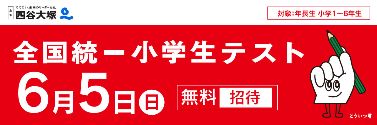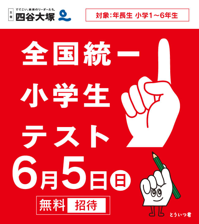 四谷大塚主催、日本全国の学習塾で一斉に行われる小学生を対象とした学力テストです。 受験料は無料です。