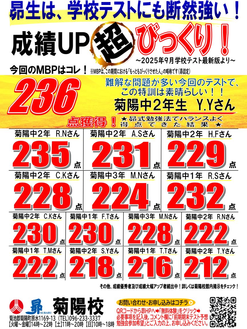 毎回恒例!「菊陽中学校 後期中間テストの予想問題勉強会」を実施します!