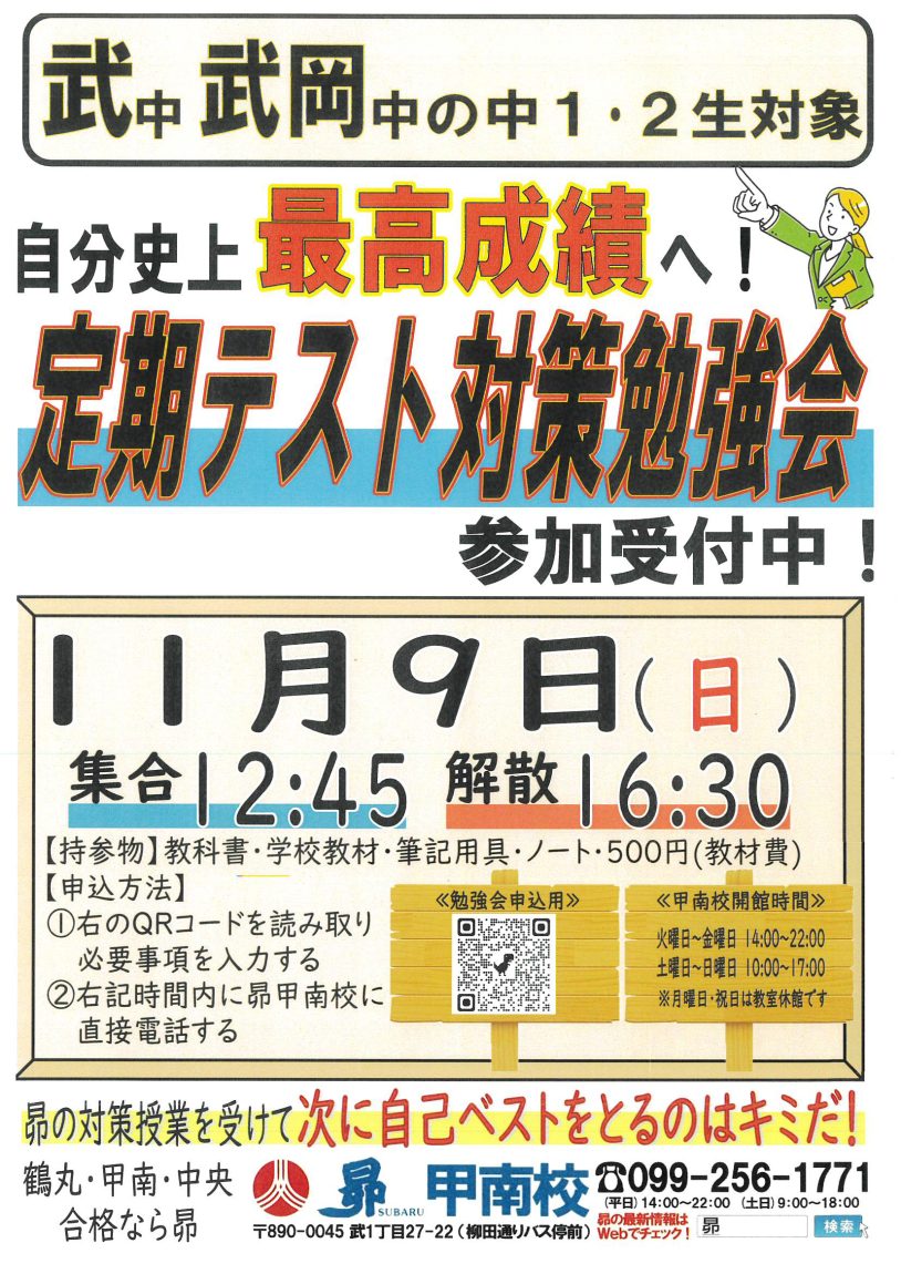 昴の対策勉強会に参加して、自分史上最高成績をとろう!