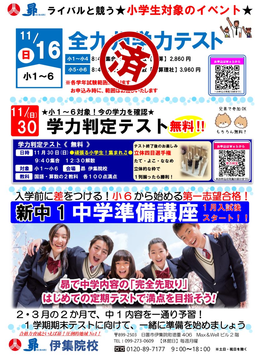 11/30(日)実施「学力判定テスト」(受験料:無料)