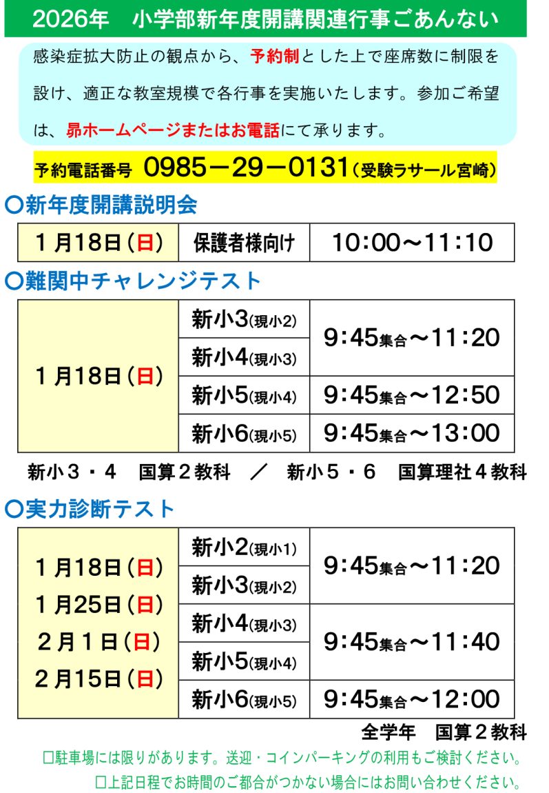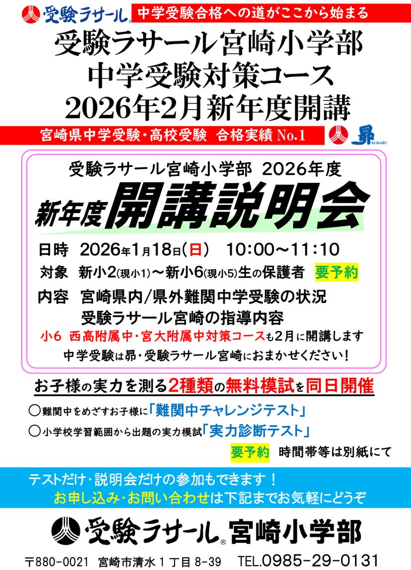 2026年度 受験ラサール宮崎【小学部】開講説明会のご案内