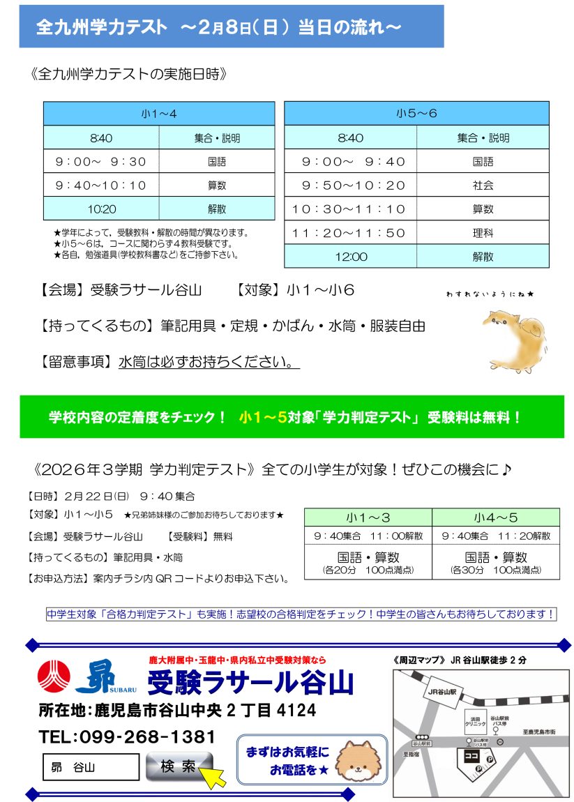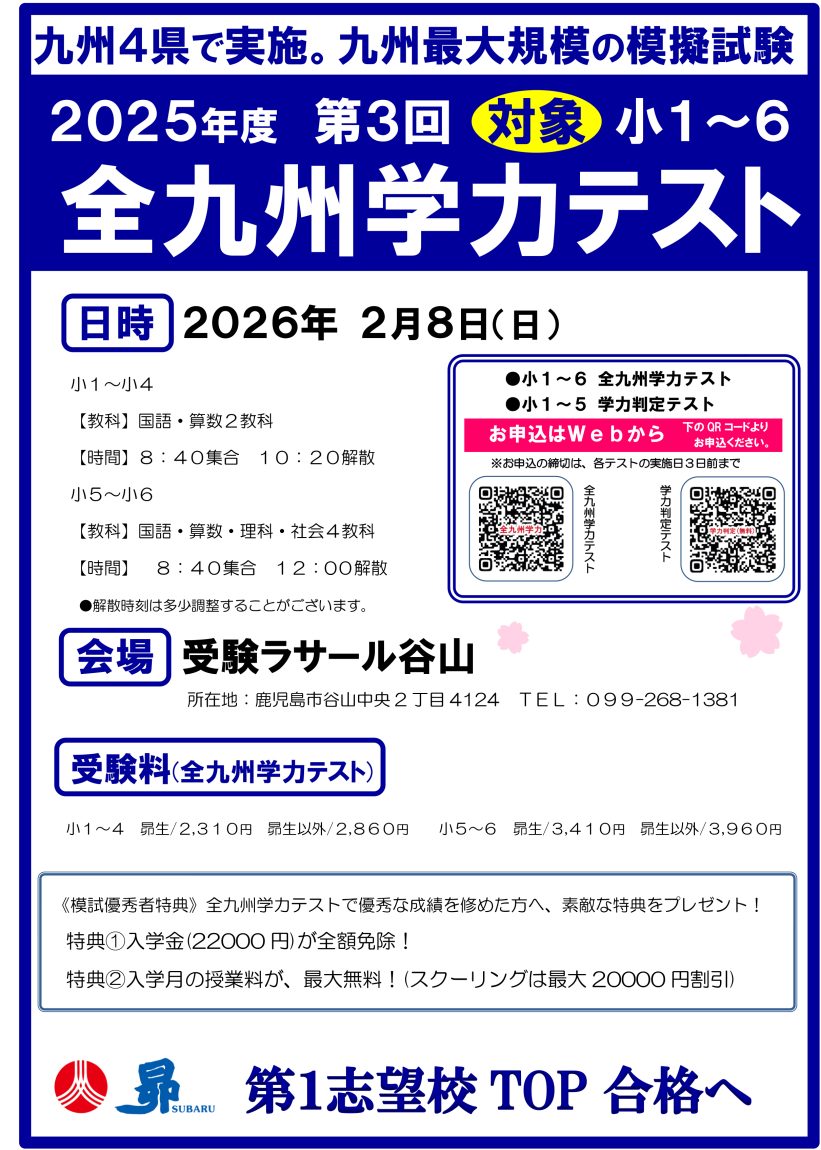 受験ラサール谷山:小学生対象『全九州学力テスト』のご案内