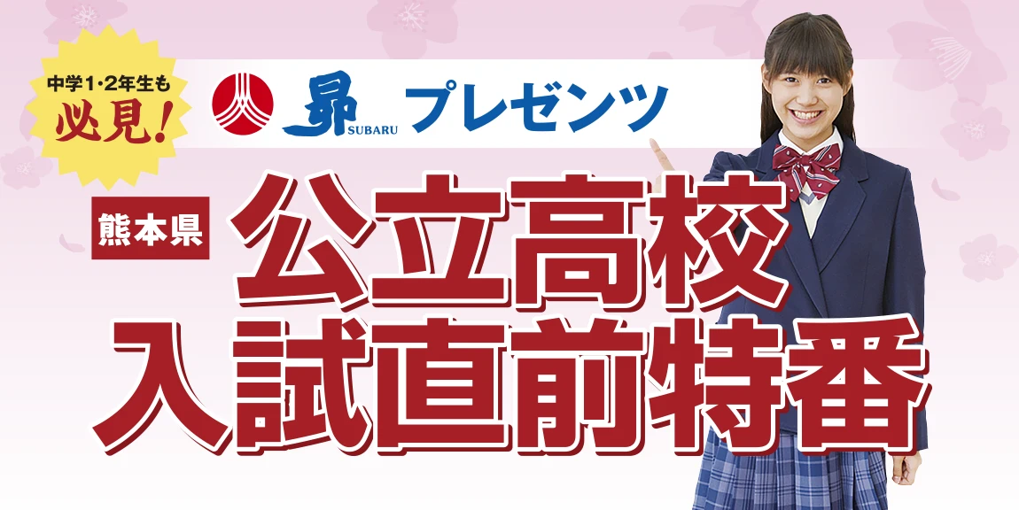 トップお知らせオフィシャル【2月7日(土)】熊本県『公立高校 入試直前特番』がKKTにて放送されました! お知らせ 【2月7日(土)】熊本県『公立高校 入試直前特番』がKKTにて放送されました! オフィシャル 2025年12月25日(木) 最後の最後はこれ見て合格! 熊本県入試と全九州模試の分析から導き出した、ライバルに差をつけるポイントを解説。合否を左右する「あと1点」を確実に獲得しよう! 放送された教科ごとの内容は下記をご覧ください! お知らせ一覧へ戻る